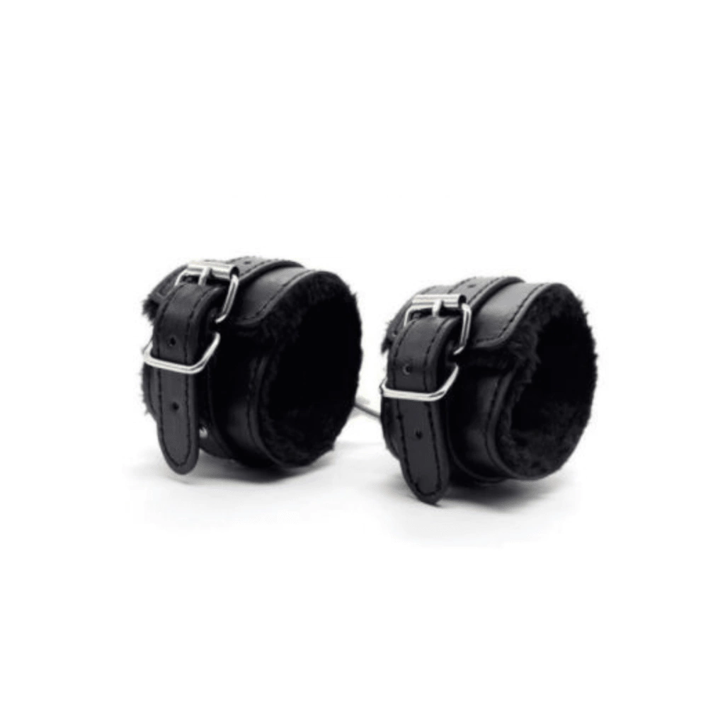 Fabulosas esposas de cuero ecológico con peluche en su interior para hacerlas más suaves y cómodas. Con cadena reforzada y mosquetón para poder ser utizadas en forma separadas. Regulables.